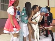 オタク男のデカマラを一心不乱に奪い合う美女レイヤー達w巨乳素人美少女痴女コスプレ乱交のエロ動画