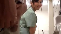 素人 『み…見てませんょ…』トイレで男の肉棒をにやけながら覗く清掃のおばさん❤勃起させて見せつけたら欲求不満な奥様だったようで…人妻制服痴女着衣立ちバック若妻騎乗位素人のエロ動画